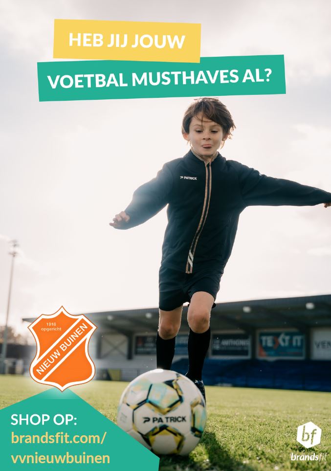 Goed nieuws! Vanaf vandaag kun je jouw vv Nieuw Buinen-kleding eenvoudig bestellen via onze nieuwe webshop. Hier vind je ons volledige nieuwe assortiment: van shirts en jassen tot sporttassen – allemaal in onze clubkleuren én tegen exclusieve ledenkorting.